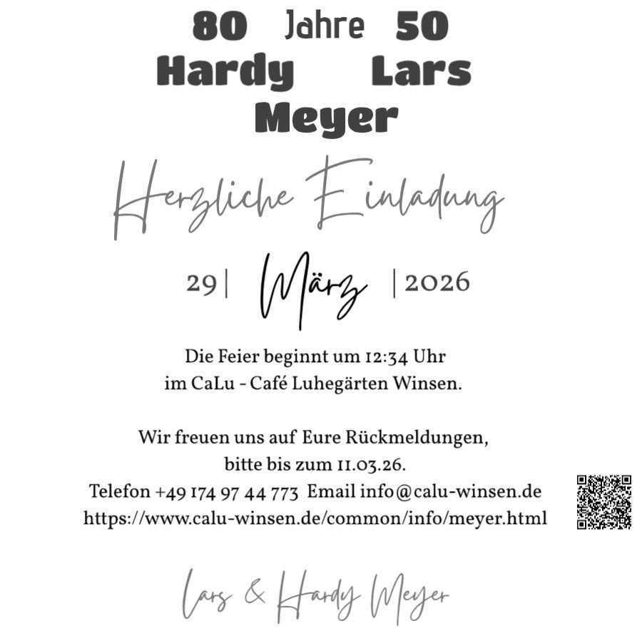 Am 29. März 2026 feiern wir ab 12:34 unsere Geburtstage